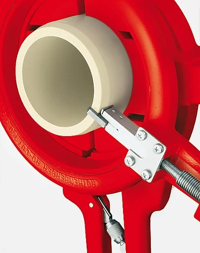 La ROCUT 160 peut être utilisée pour couper et chanfreiner des tuyaux en plastique en une seule étape. Fonctionnement simple et sûr. Pratiquement rangé dans un étui en plastique.